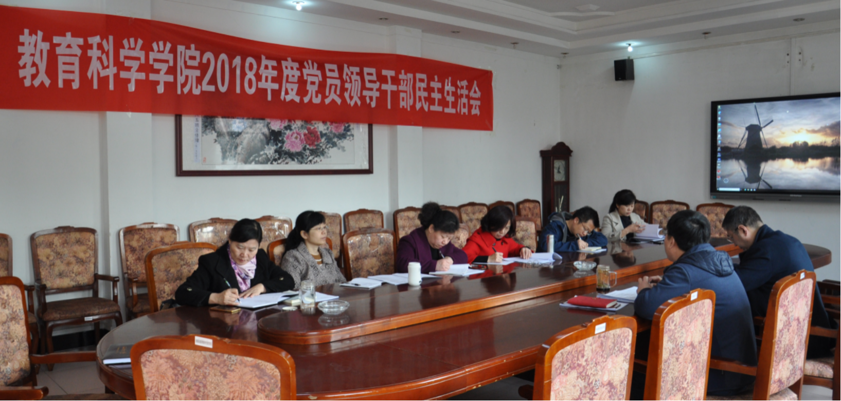 2019年3月8日上午,教育科学公司党委在公司会议室召开2018年度党员领导干部民主生活会。学院党员领导干部参加,非中共党员领导干部和教工支部书记列席,韩树林书记主持会议。