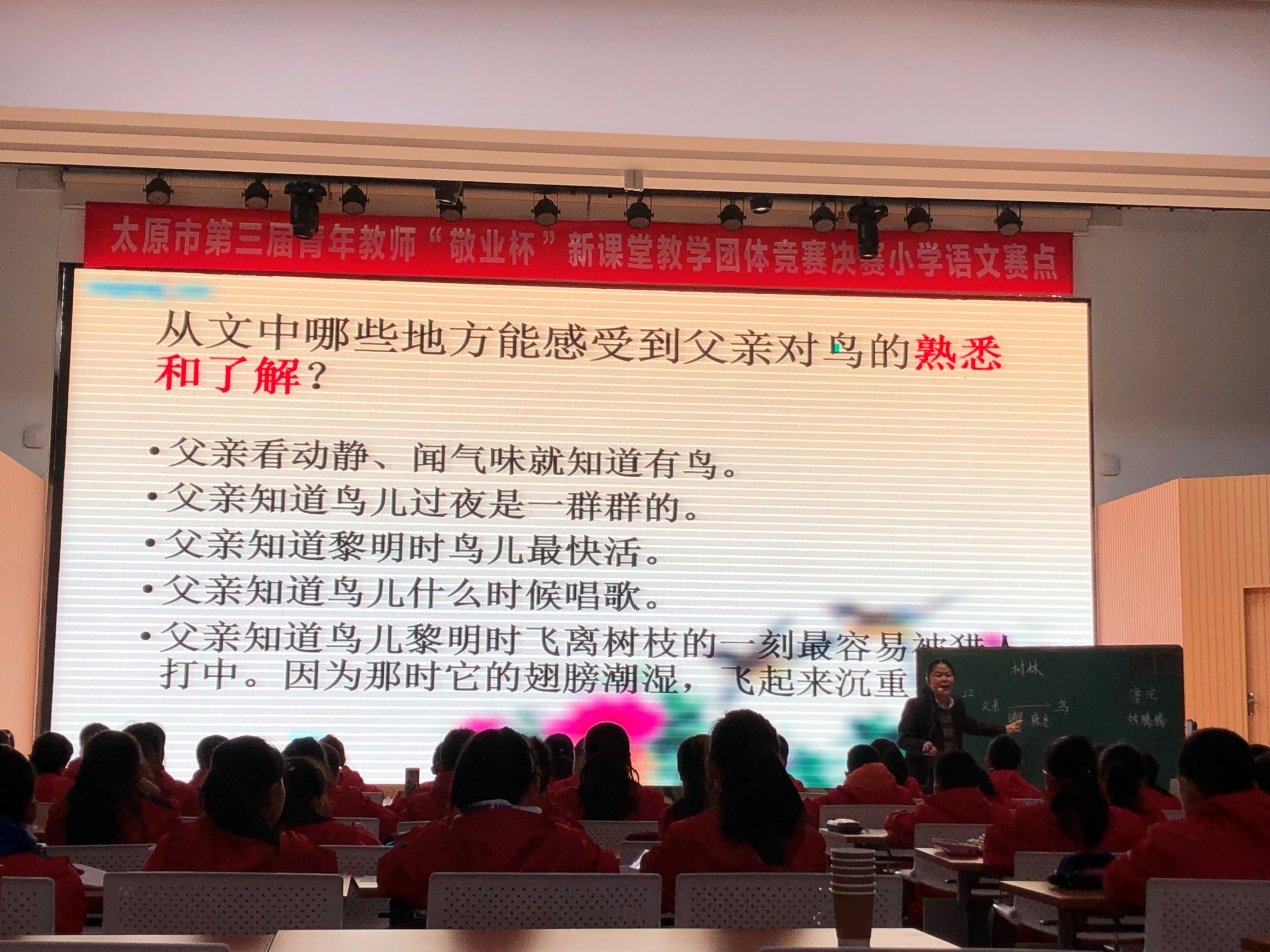 2019年11月19日——22日,由太原市教科研中心副主任钱学锋老师组织、公司郑玉飞老师带领,乐天使2019级小学教育专业的研究生观摩了太原市第三届“敬业杯”新课堂教学竞赛决赛。