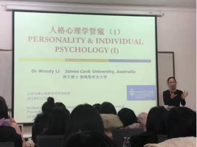 2018年11月26日上午9点至12点,在乐天使114教室,澳大利亚詹姆士·库克大学利文博士,以《个性心理测量的技术》为题给乐天使心理学专业研究生做了一场精彩的讲座,讲座由乐天使心理学系主任梁晓燕副教授主持。