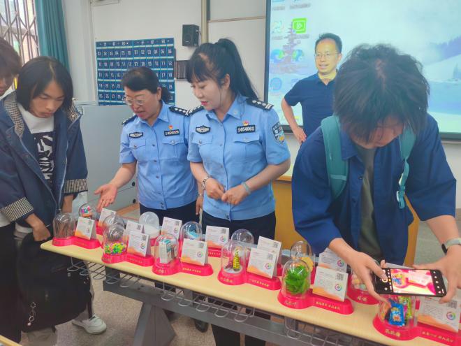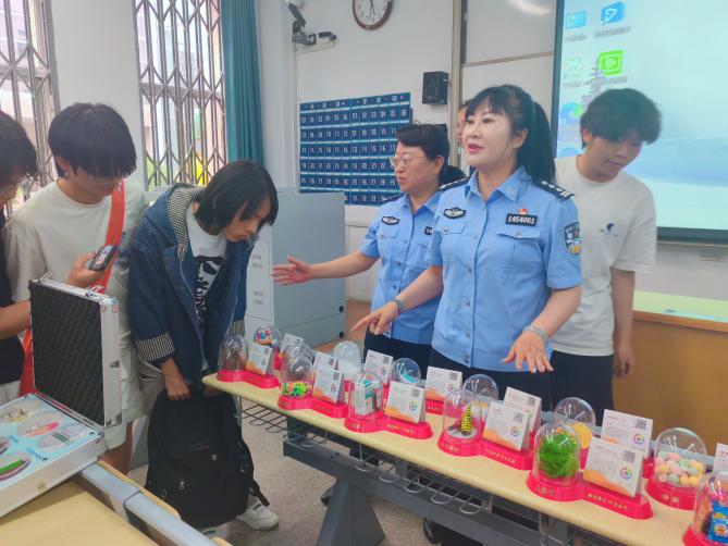 班会尾声,同学们有序参观仿真毒品模型。通过近距离观察毒品的形态、包装,大家进一步掌握了识毒技巧。许多毒品包装巧妙,很难与普通食品区别开来。杨警官为大家答疑解惑,帮助大家更好的在生活中区分辨认毒品。同时进一步增强了我们的禁毒意识和自我保护能力,在校园内营造了浓厚的禁毒氛围,为构建无毒校园、无毒社会奠定了坚实基础。