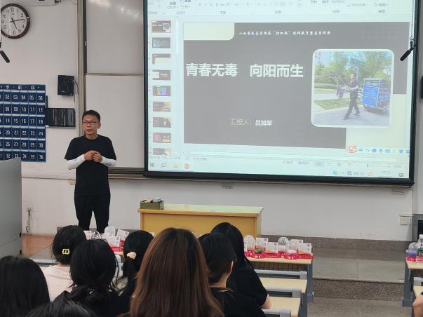 接着吕加军老师走进员工之间,以亲身经历讲述毒品带来的噩梦。同学们在那些故事里感受到了一个支离破碎的家庭,以及子欲养而亲不待的遗憾。吕老师用自己的坦诚勇敢的面对了自己的错误,让更多人看到吸毒的危害,告诫员工们要自觉抵制毒品,远离违法犯罪。鼓励员工们积极向家人、朋友宣传禁毒知识,共同营造无毒社会环境。